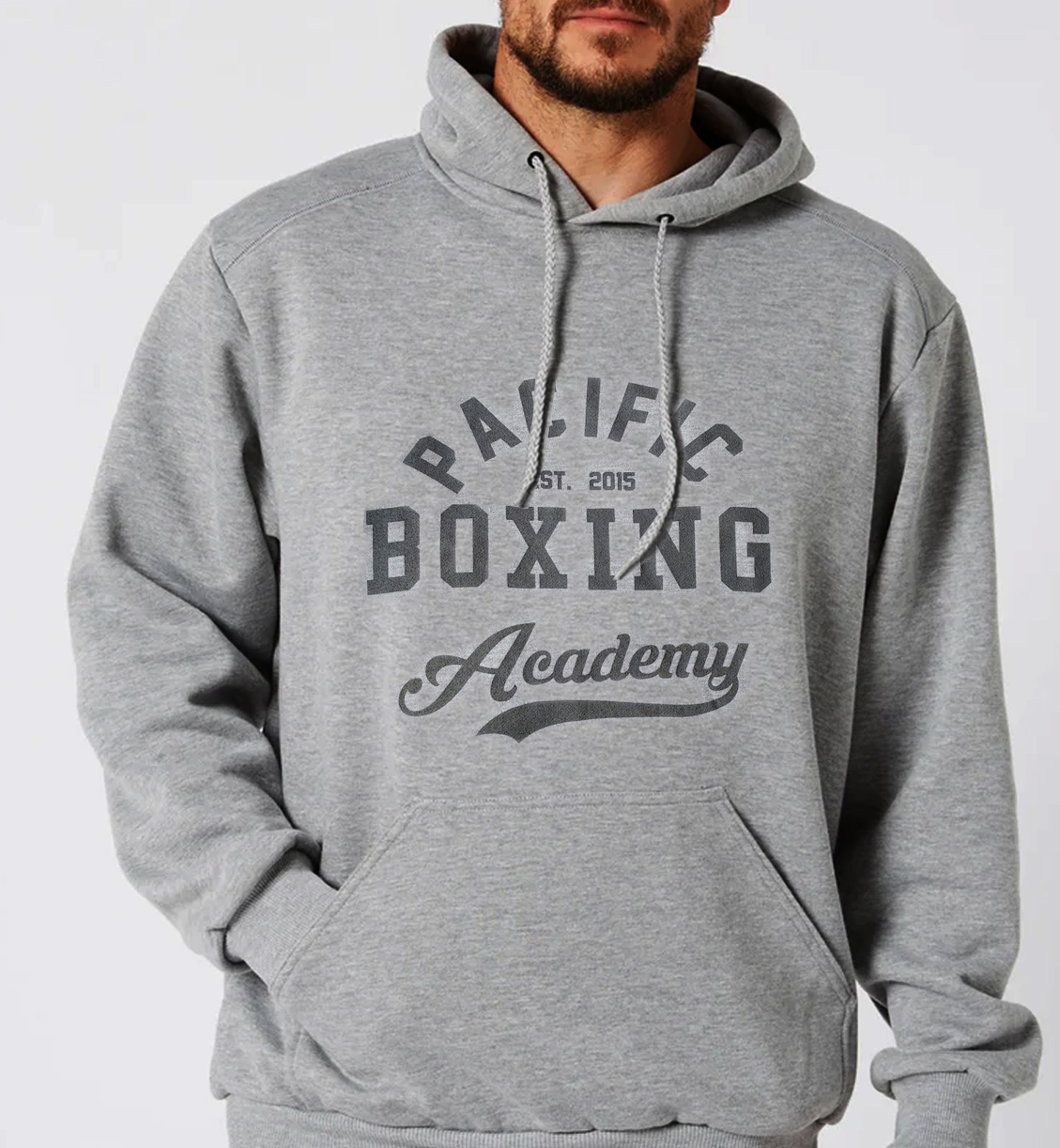Our Boxing Club Hoodie Features our Pacific Boxing Academy brand.